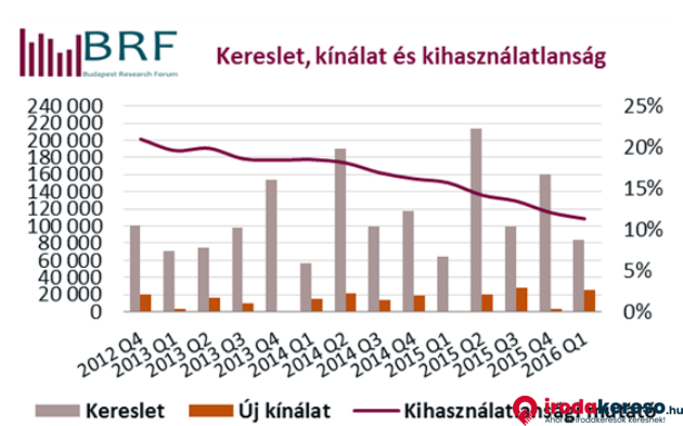 A Budapest Research Forum 212 szerződést regisztrált 2016 első negyedévében, az átlagos tranzakcióméret 398 négyzetméter volt. A legnagyobb tranzakciók között található a GE bővülése 3.671 négyzetméteren a Váci Greens B épületében és az MSD 2.498 négyzetméteres hosszabbítása a Millenium Towers III irodaházban. A legnagyobb új tranzakció az Átrium Parkban kötetett több mint 1.800 négyzetméterre.