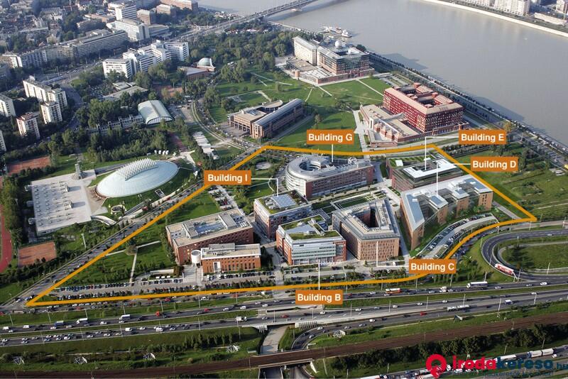 - Presztízs értékű irodalokáció, parkosított munkakörnyezet, 50% zöldterület arány